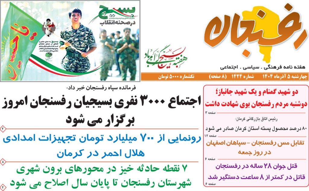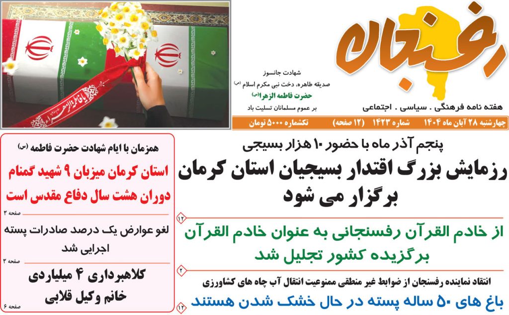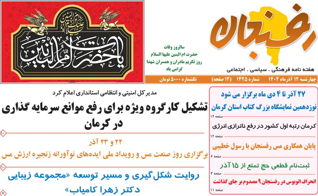نشریه چهارشنبه 12 آذر ماه 1404 – شماره 1425